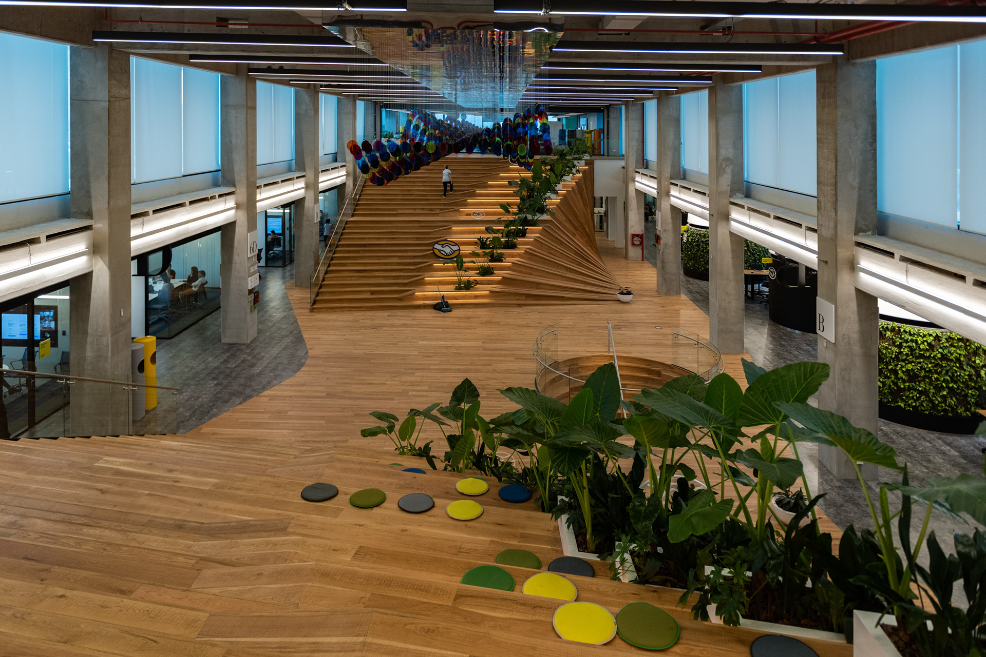 Las arquitectas argentinas Paula de Elía y Milagros Irastorza transformaron una antigua fábrica de Philips abandonada en las vibrantes oficinas de Mercado Libre en Saavedra, donde más de 2.000 empleados ahora circulan por 26.400 metros cuadrados conectados por escaleras y "links" que democratizan el espacio. El proyecto de 1.100 millones de pesos fusiona arte colorido curado por Timoteo Lacroze con diseño monocromático, creando un entorno donde cada rincón invita a la contemplación y las circulaciones impredecibles permiten que los empleados naveguen el edificio libremente, sin jerarquías. Lo más fascinante es cómo este espacio diseñado interdisciplinariamente va tomando vida propia día a día, adaptándose orgánicamente a los usos que los trabajadores le dan, con terrazas panorámicas, espacios sociales y rincones de concentración que hacen que la gente quiera volver a la oficina.